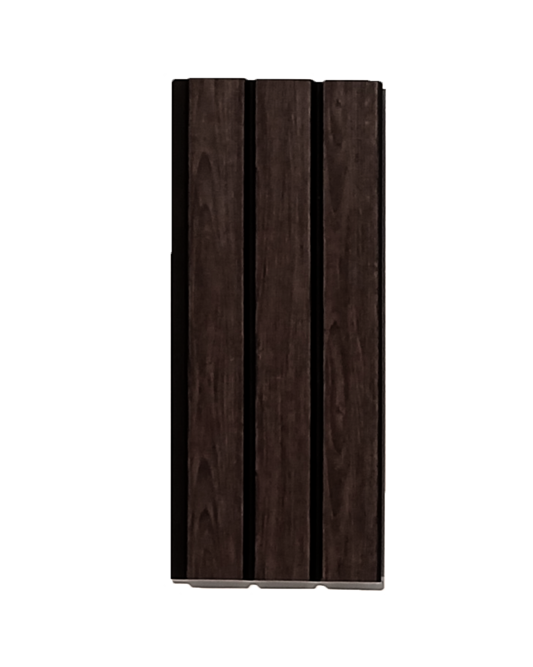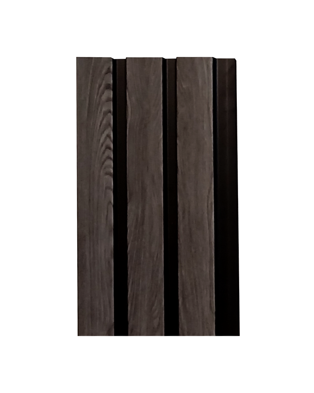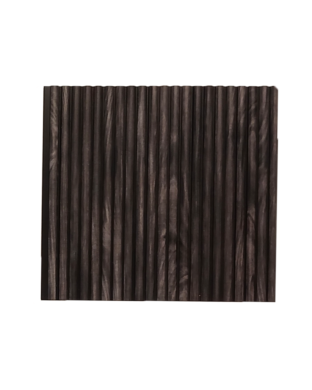 Placa decorativa de PVC símil madera oscura, ideal para interiores cálidos y revestimientos modernos.