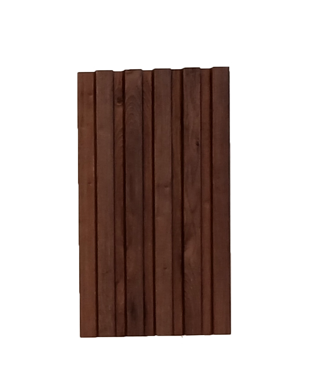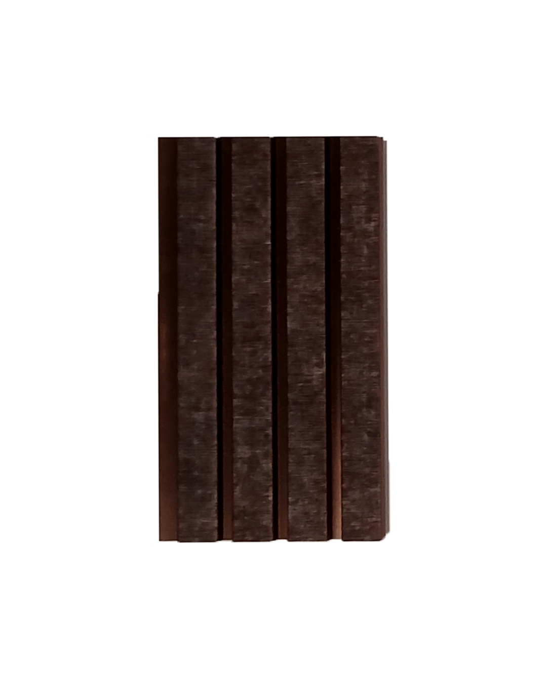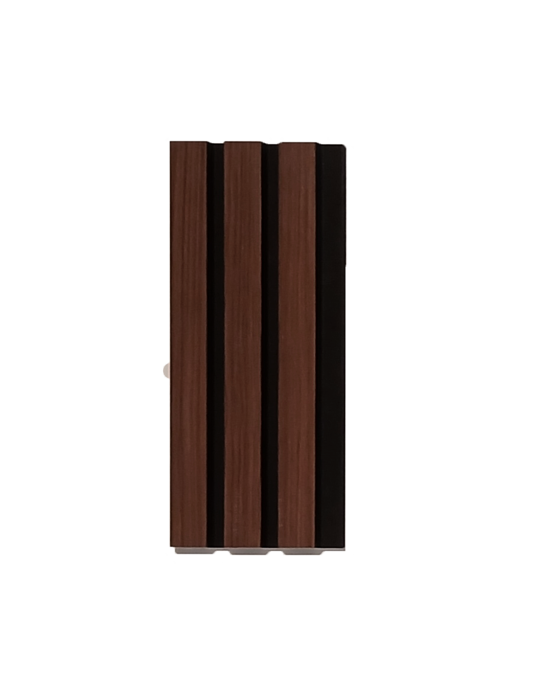 Placa decorativa de PVC símil madera oscura, ideal para interiores cálidos y revestimientos modernos.