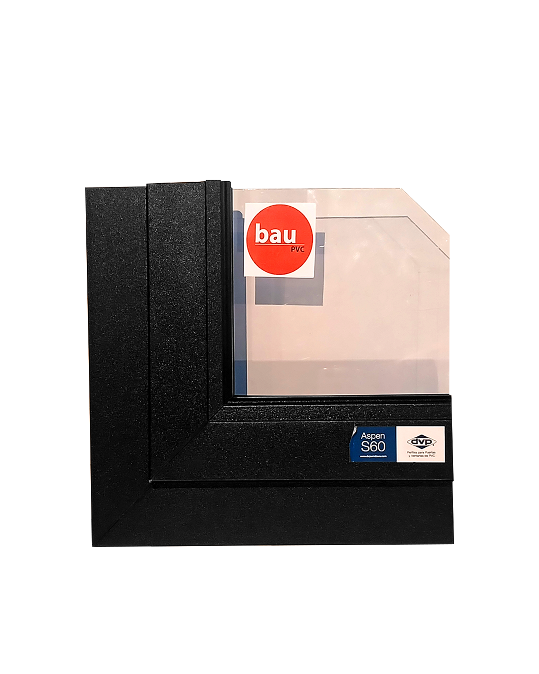 Abertura PVC de diseño contemporáneo en color negro. Alta eficiencia y sello de calidad DVP.