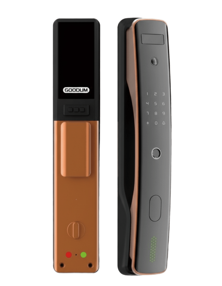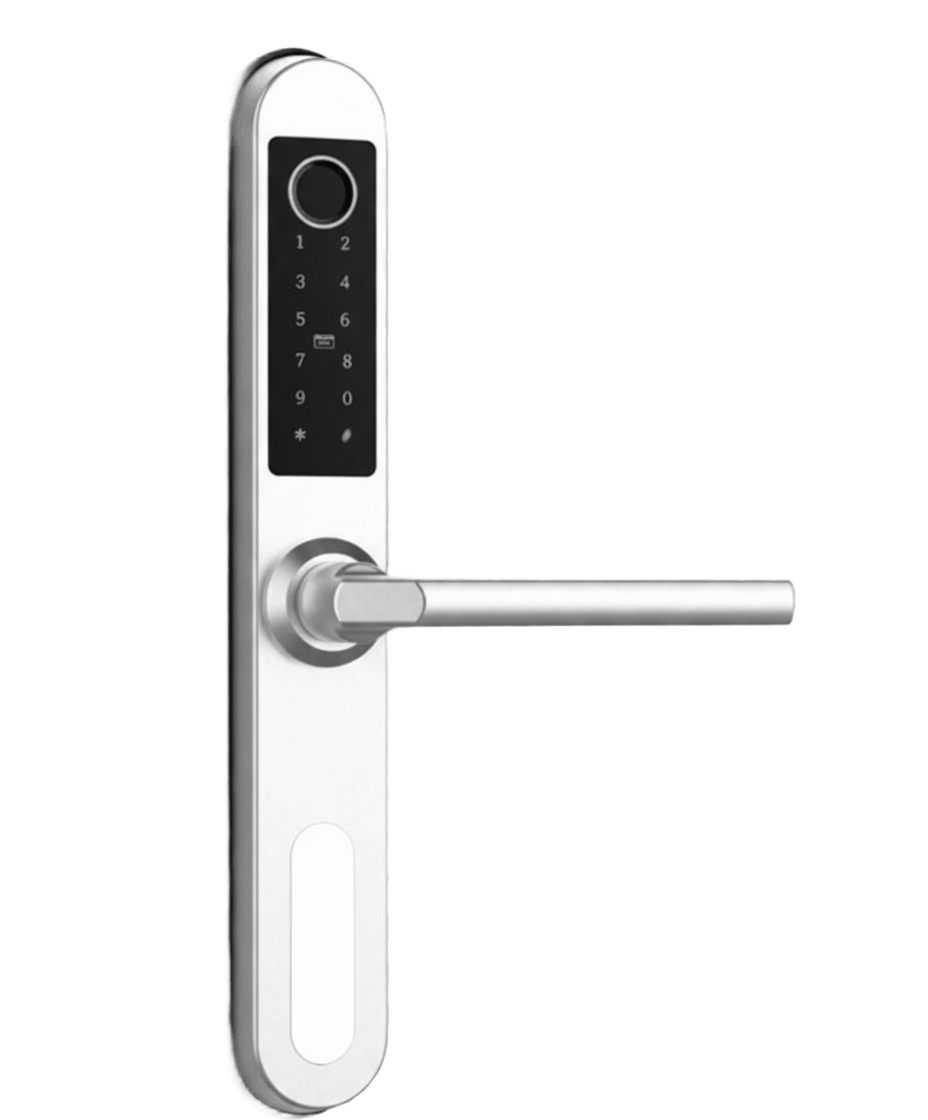 Acceso por huella, código, tarjeta y llave. Diseño en acero inoxidable y batería de larga duración.